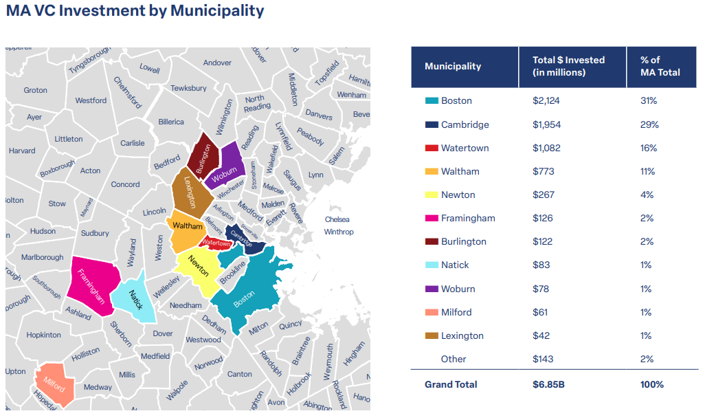Several of the sector’s largest global deals closed in Greater Boston in recent months. That includes Watertown's Treeline Bio, which led the region with a $621 million financing round and Newton’s Abcuro, which had the sixth-largest deal at $200 million. Both communities rank among the top five suburban markets for biotech investment this year.
