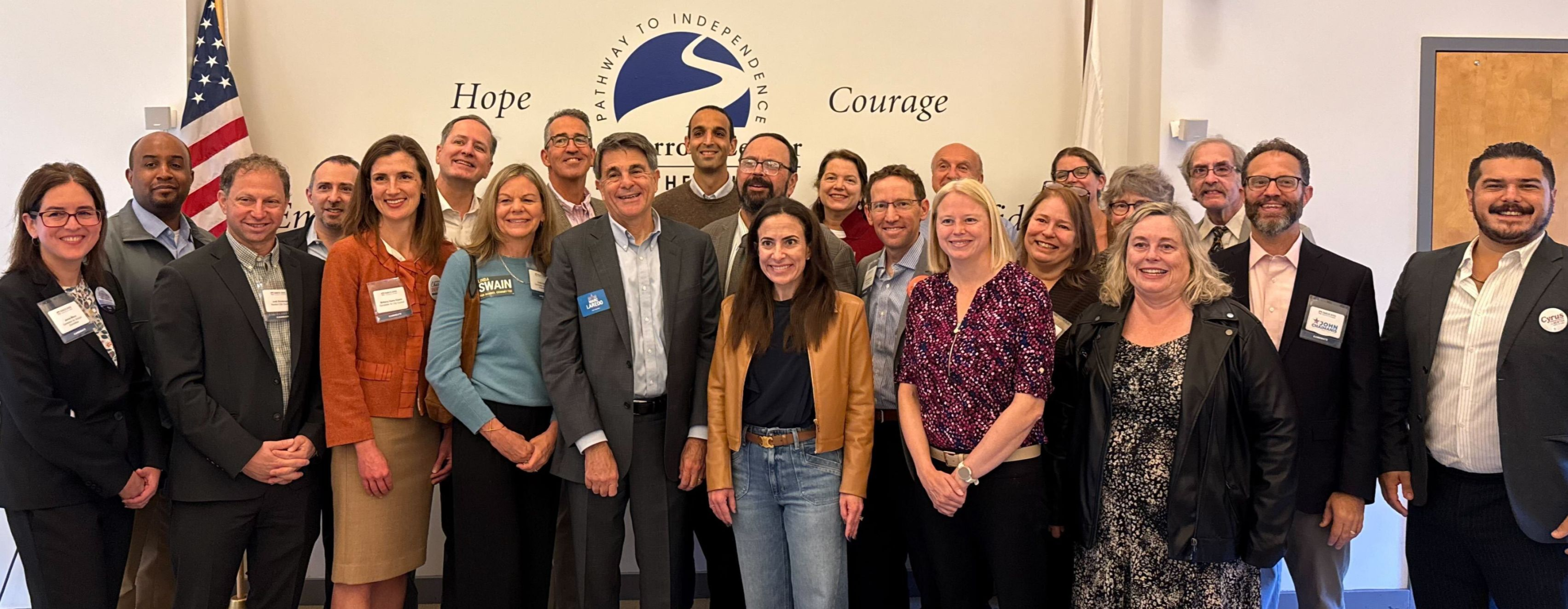 Twenty-three of the 33 candidates on the ballot in Newton’s 2025 municipal election (along with Congressman Jake Auchincloss) attended our Meet the Candidates Coffee Connect at the Carroll Center for the Blind.